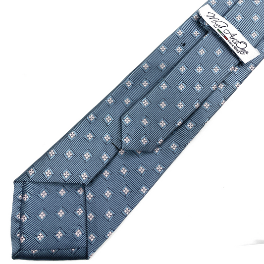 Cravatta Fantasia Azzurra con Quadrati Rosa 8cm