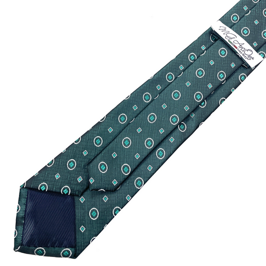 Cravatta Fantasia Verde con Cerchi e Quadrati 8cm