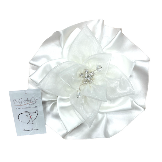 Molveno Base Raso con Nastro, Fiore in Organza e Strass