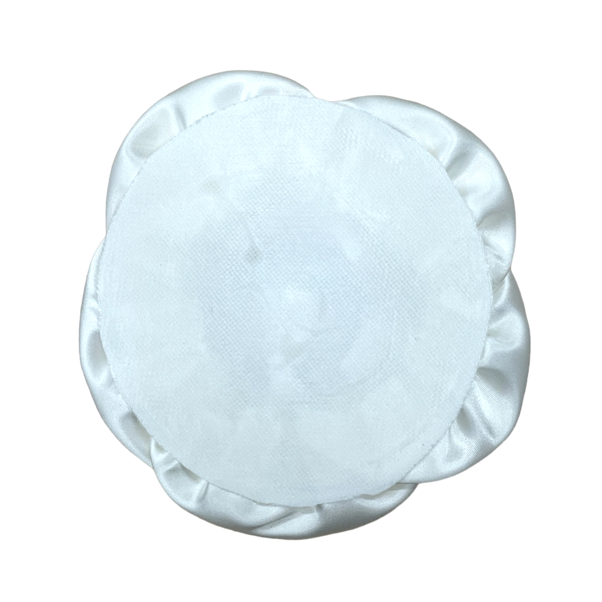 Il portafede Alviano ha una forma circolare a fiore ed è mostrato nella sua variante in base raso, con petali organza e raso e fiorellini con strass e presenta le seguenti misure: