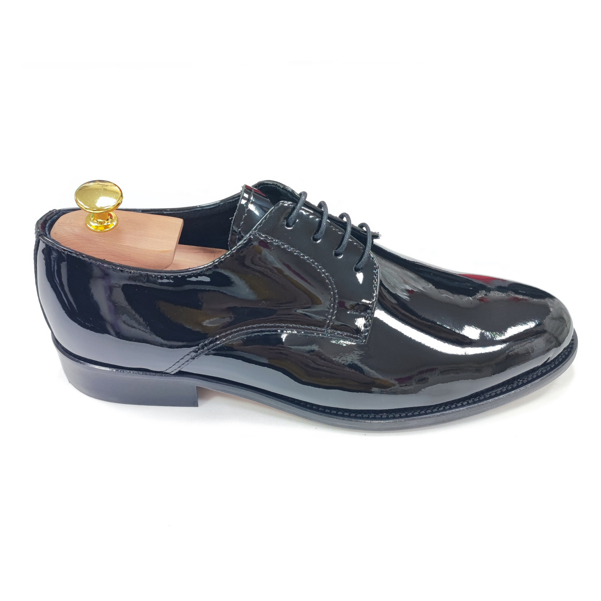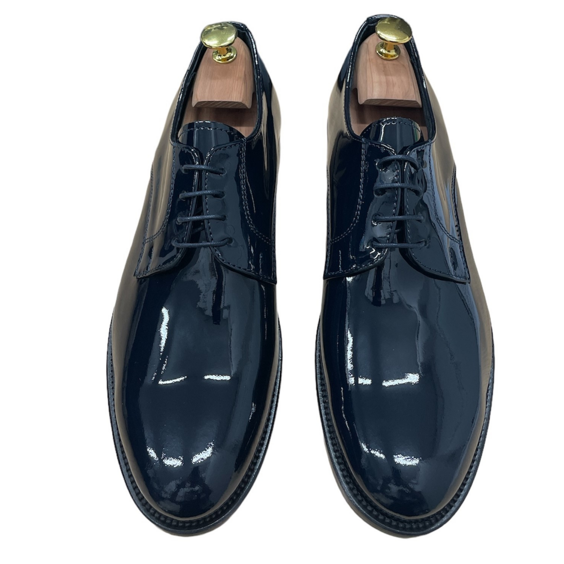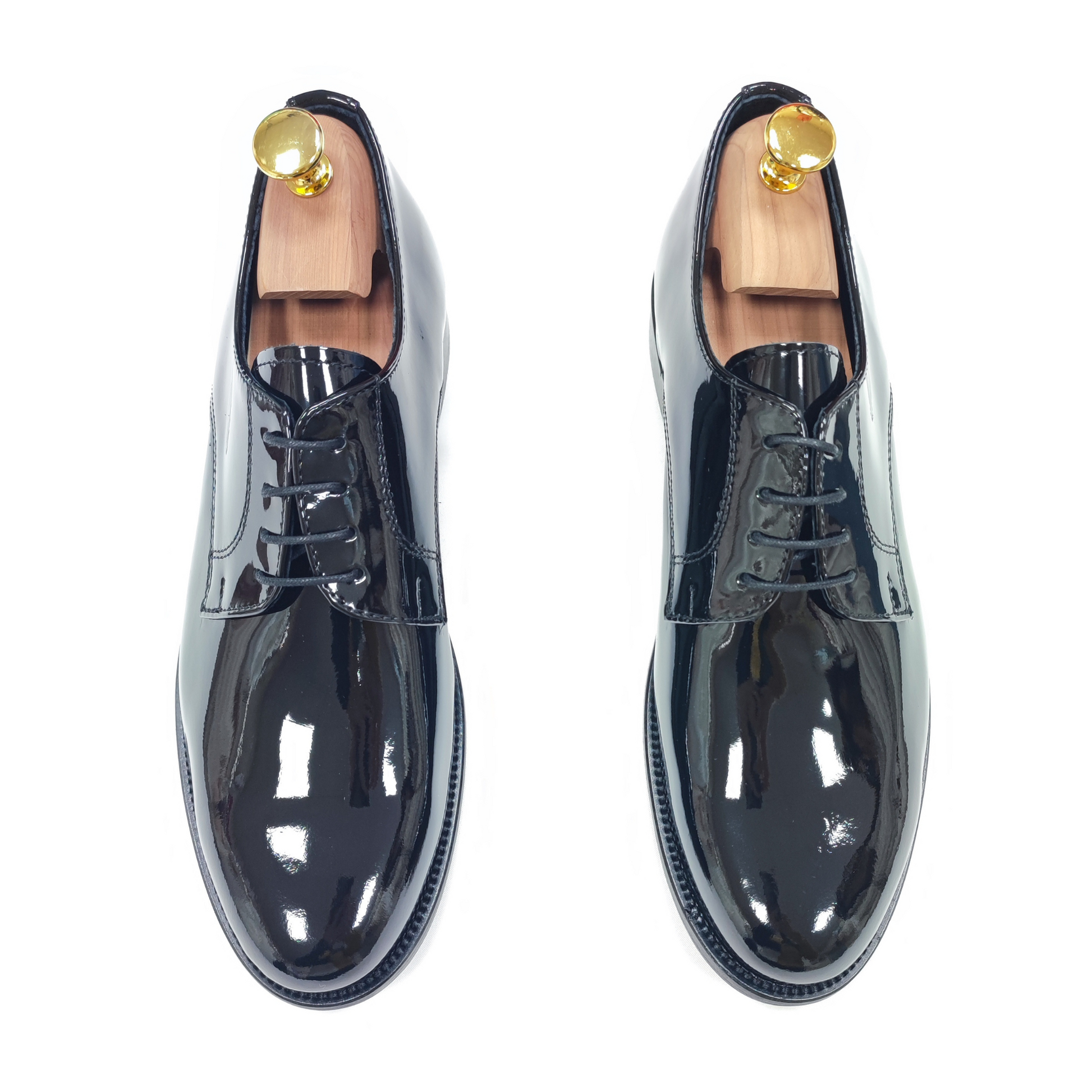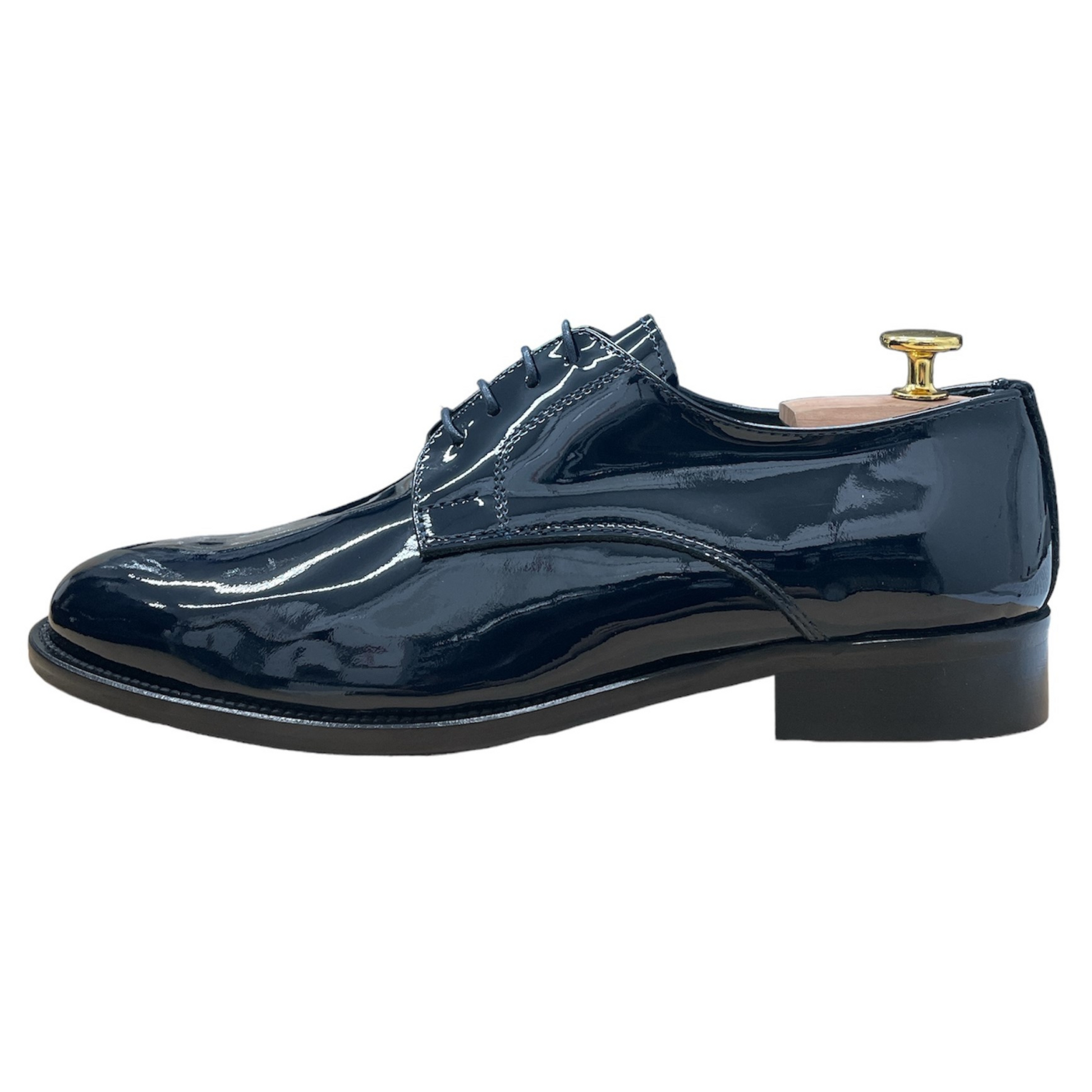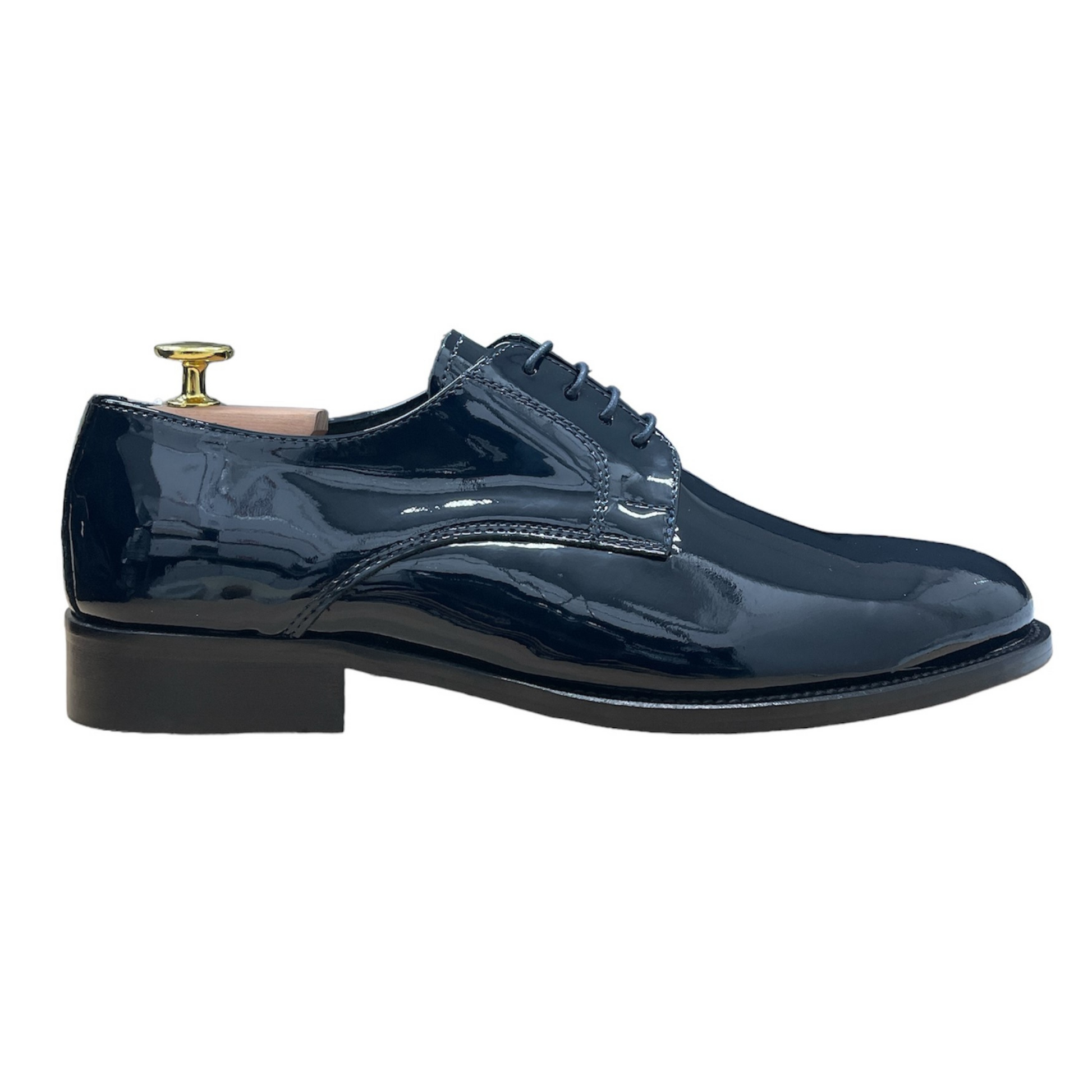 Realizzata in vernice di alta qualità, si distingue per la sua lucentezza profonda e per la linea pulita che valorizza ogni completo da cerimonia, dal classico smoking al più attuale abito slim.