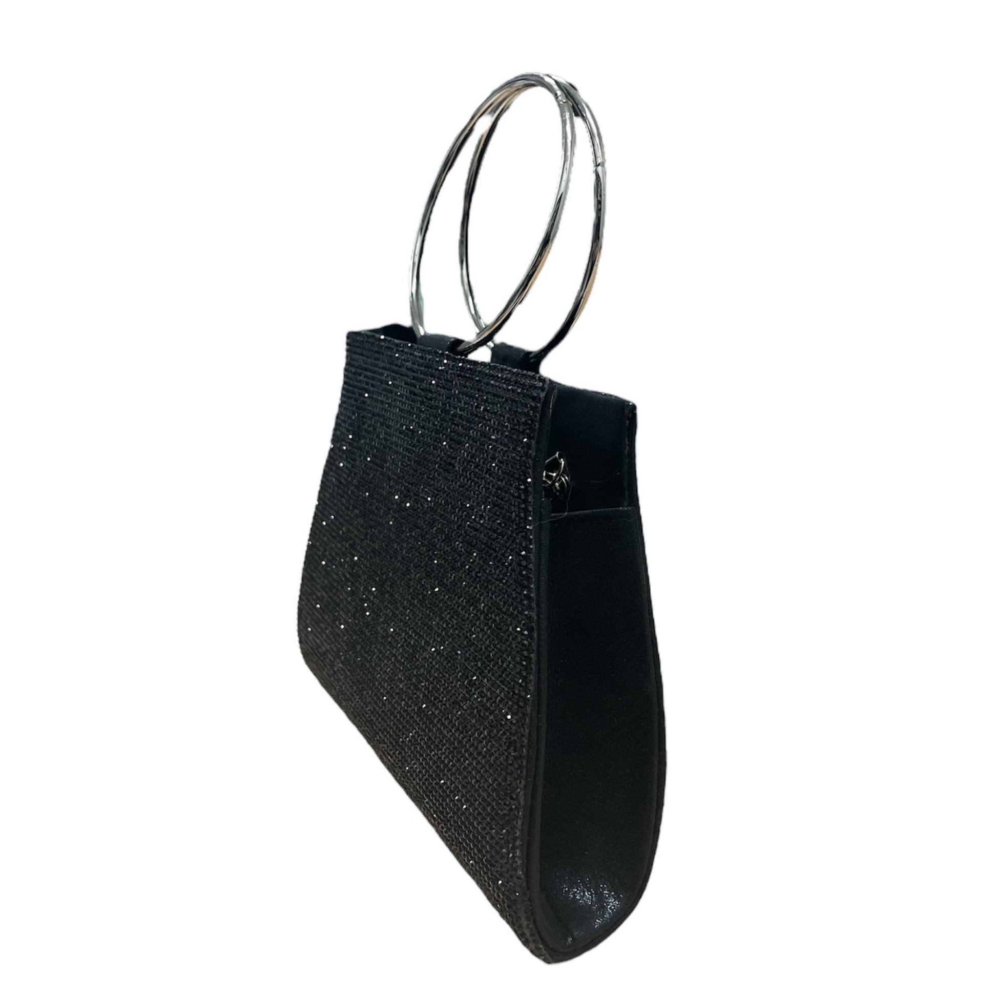 Presenta un corpo nero con strass neri sul davanti e dettagli argentati.