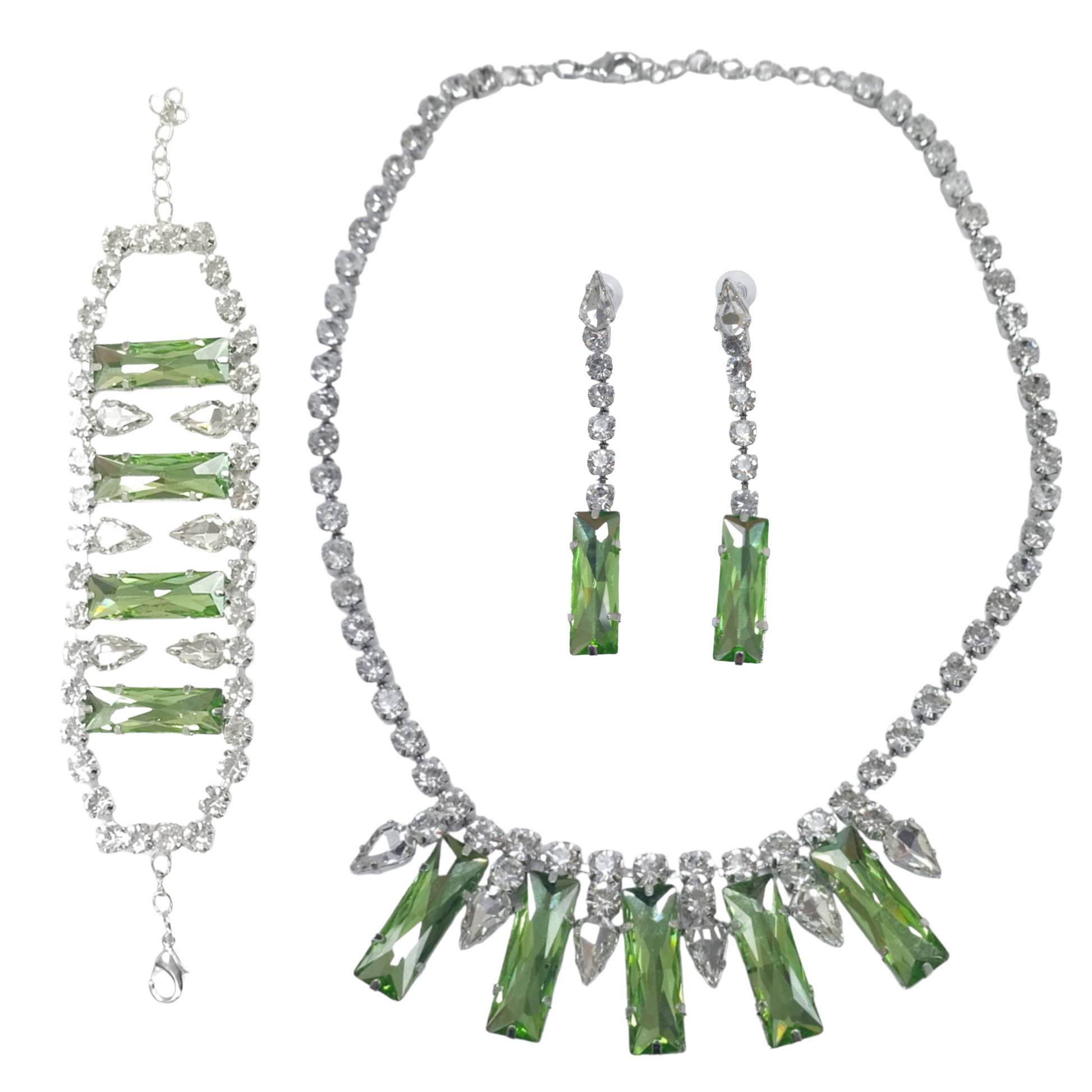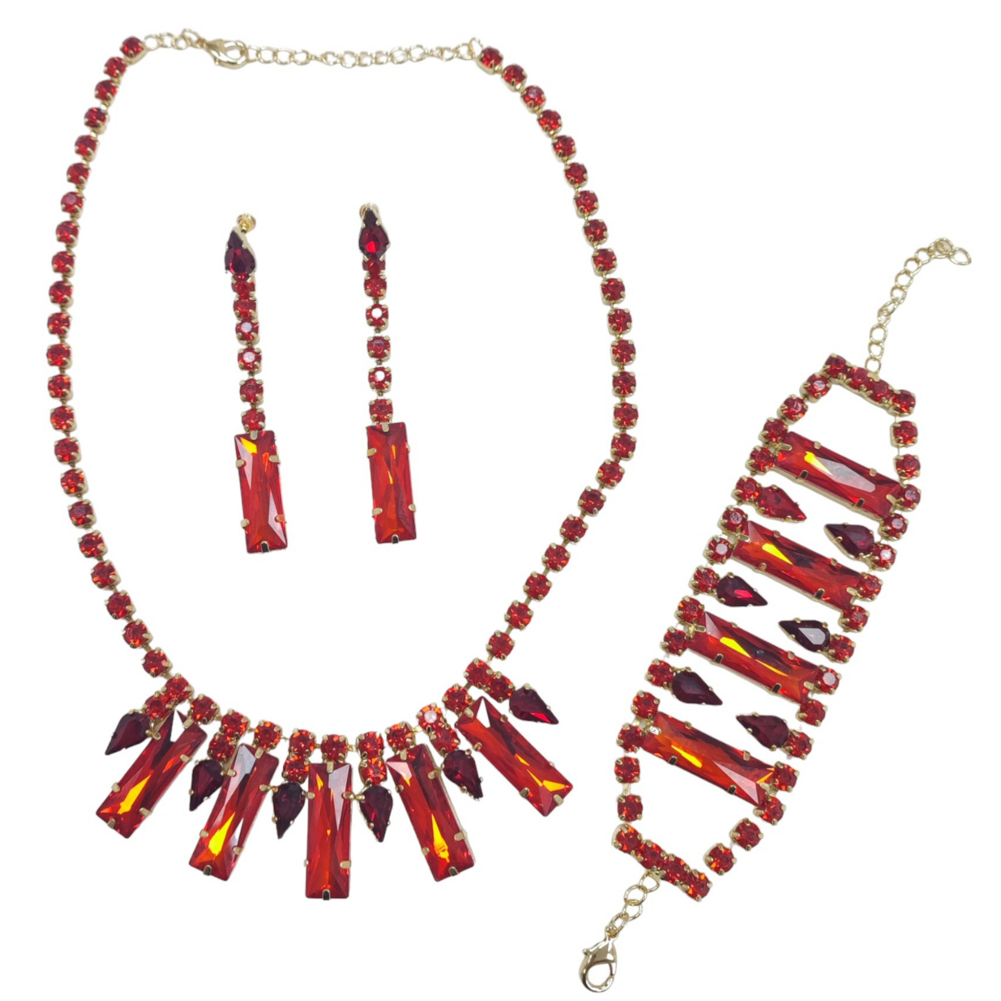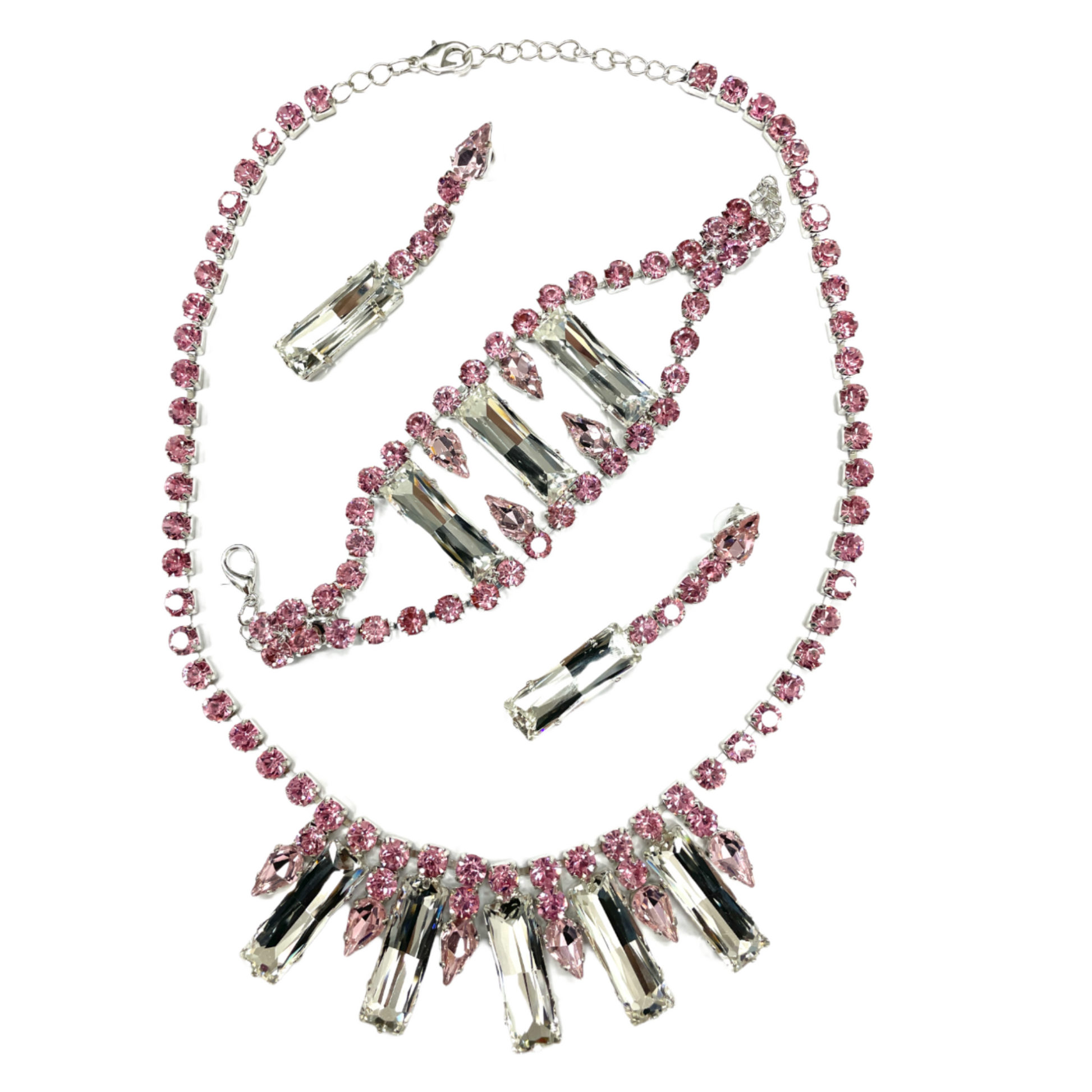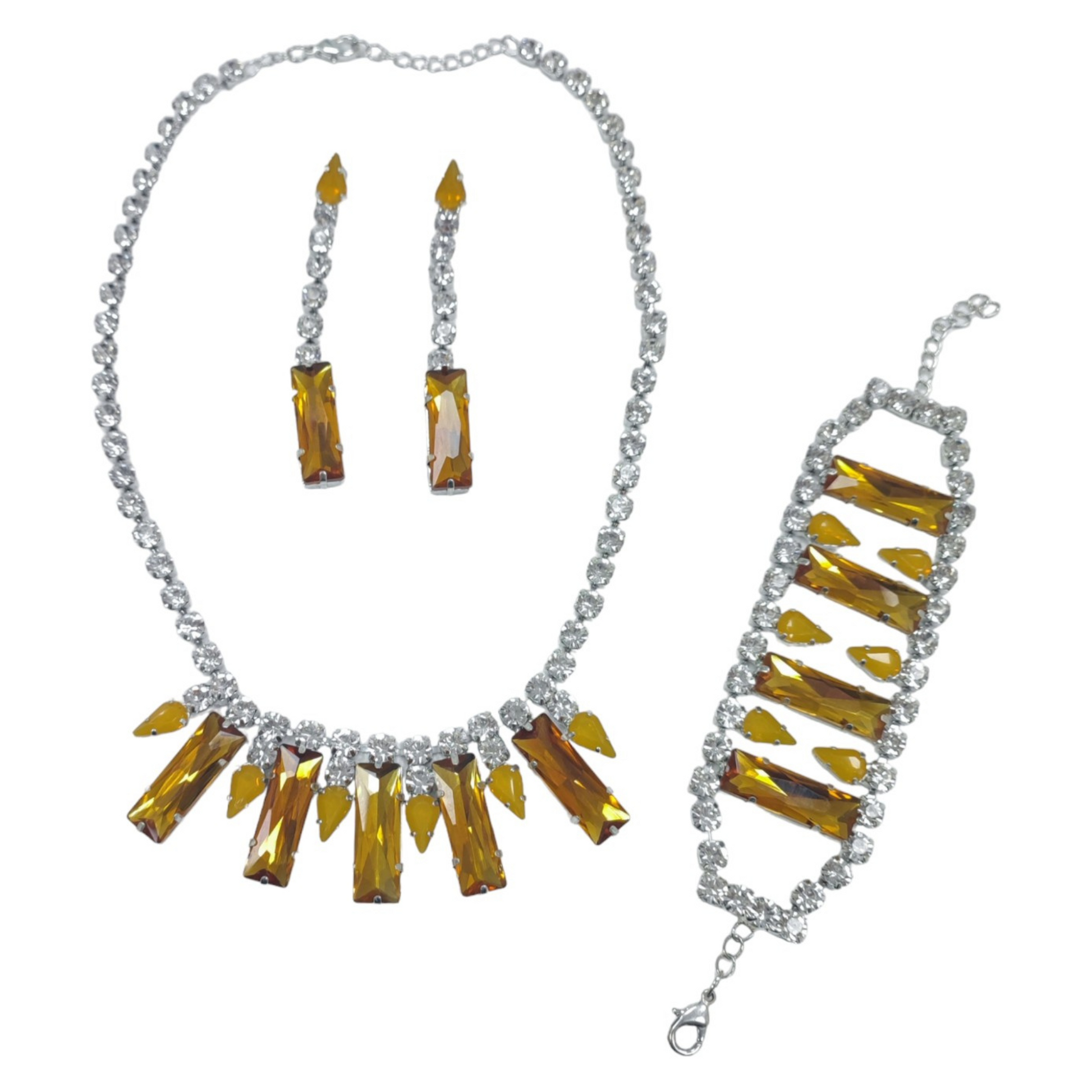 Il modello di bracciale, collier orecchini Nisida presenta pietre strass ambra e crystal.