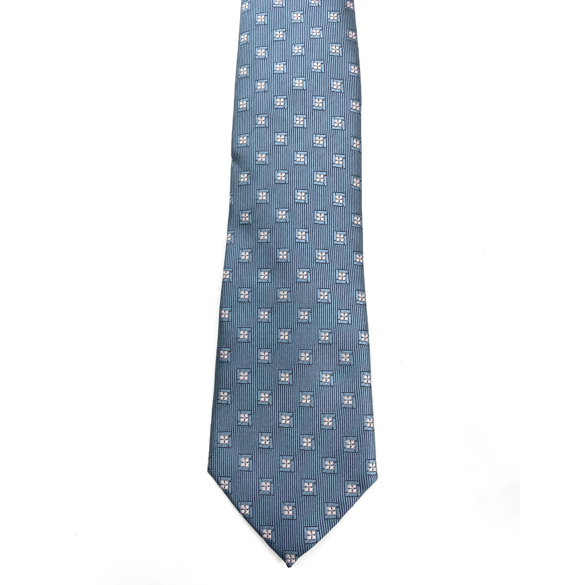 Cravatta Fantasia Azzurra con Quadrati Rosa 8cm