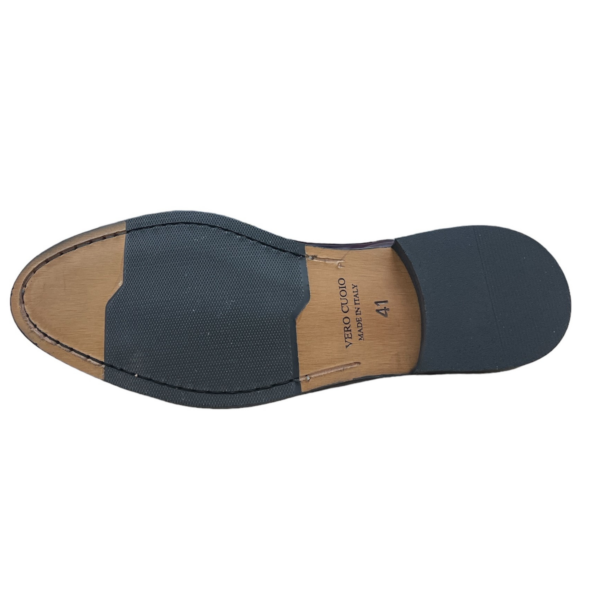 Ogni dettaglio della scarpa Ischia spazzolato è frutto di un’attenta lavorazione artigianale. La suola cucita interamente a mano testimonia la maestria e la dedizione dei nostri artigiani, mentre la pelle spazzolata conferisce una lucentezza naturale e un aspetto impeccabile nel tempo. Si tratta di una calzatura destinata a durare, mantenendo intatta la sua eleganza anche dopo l’evento.