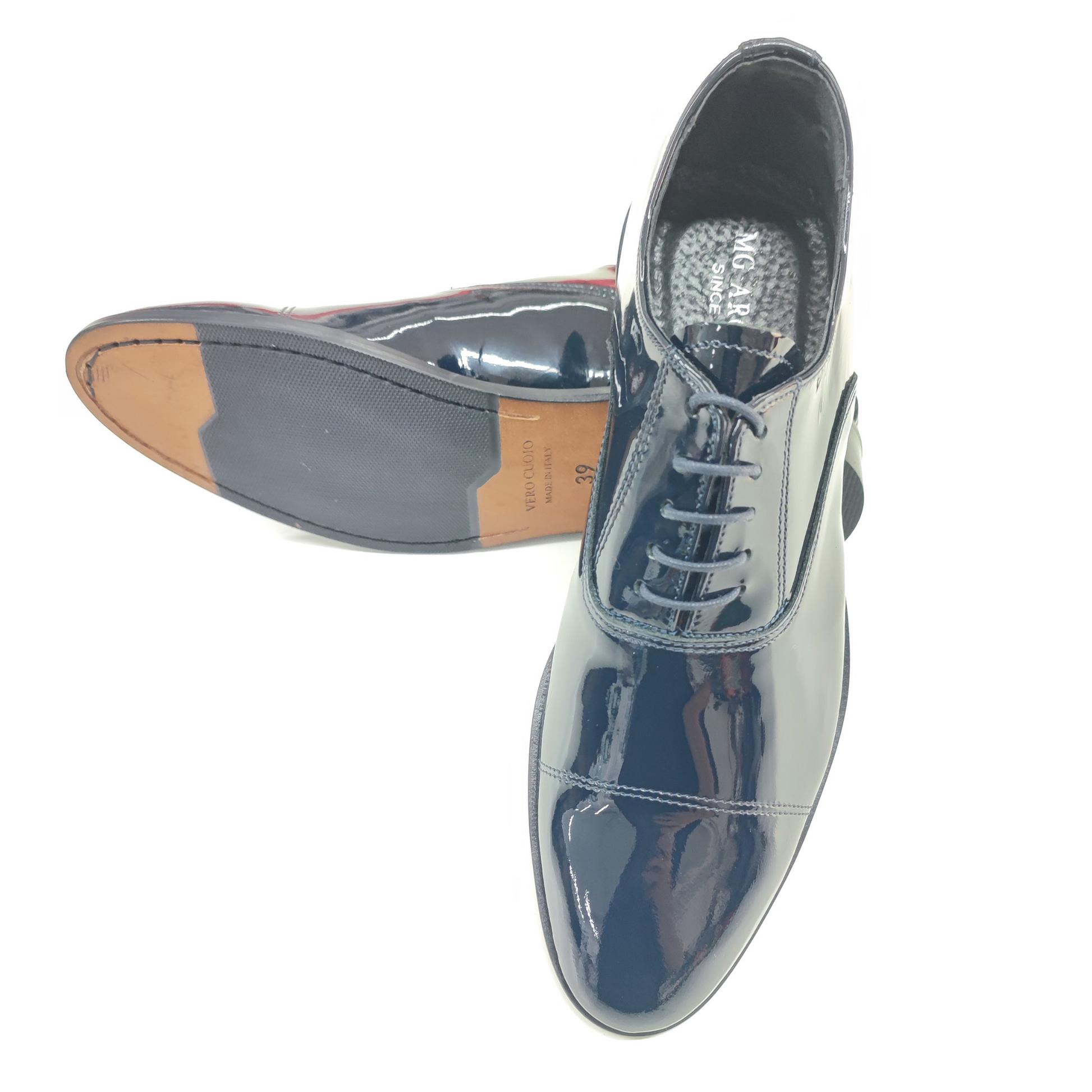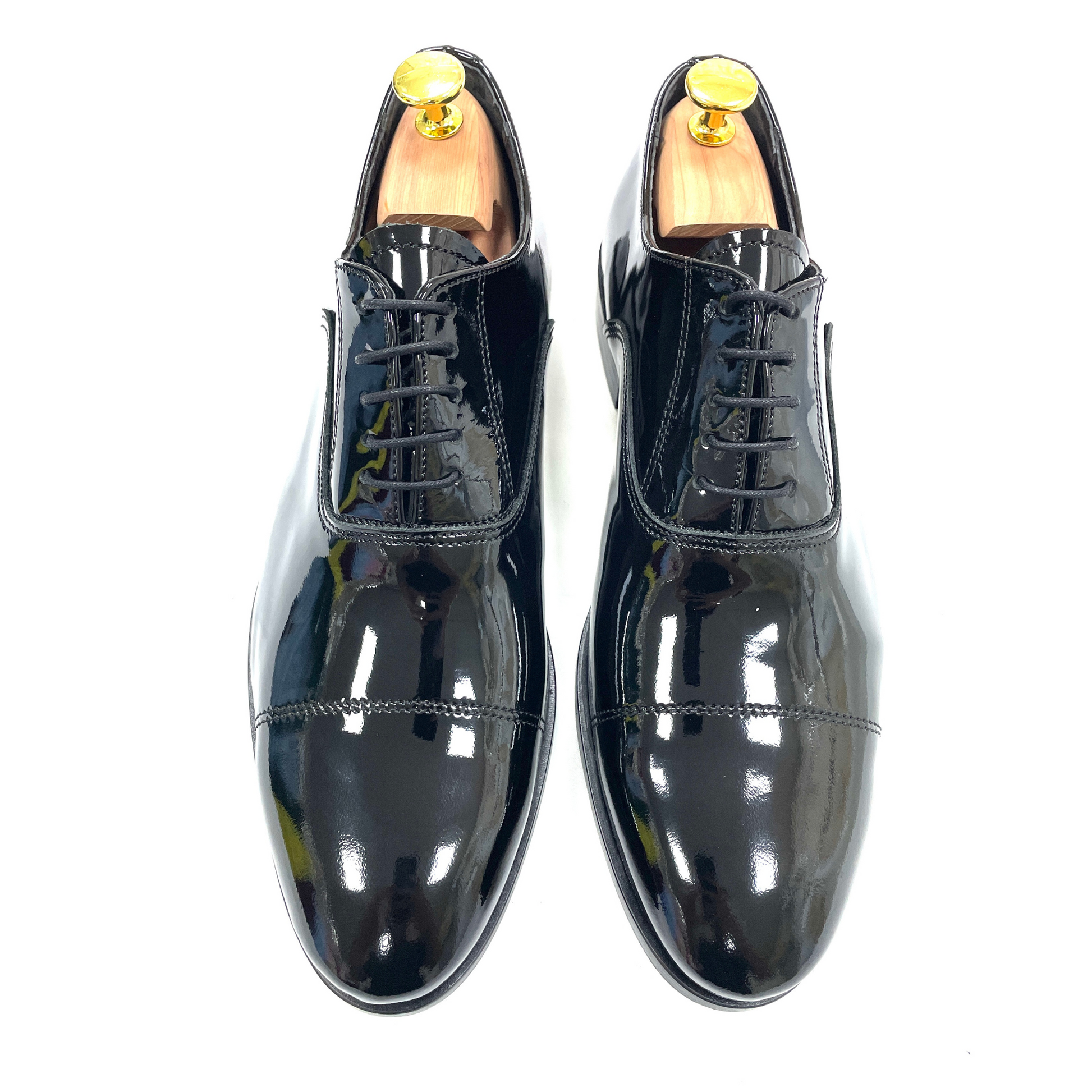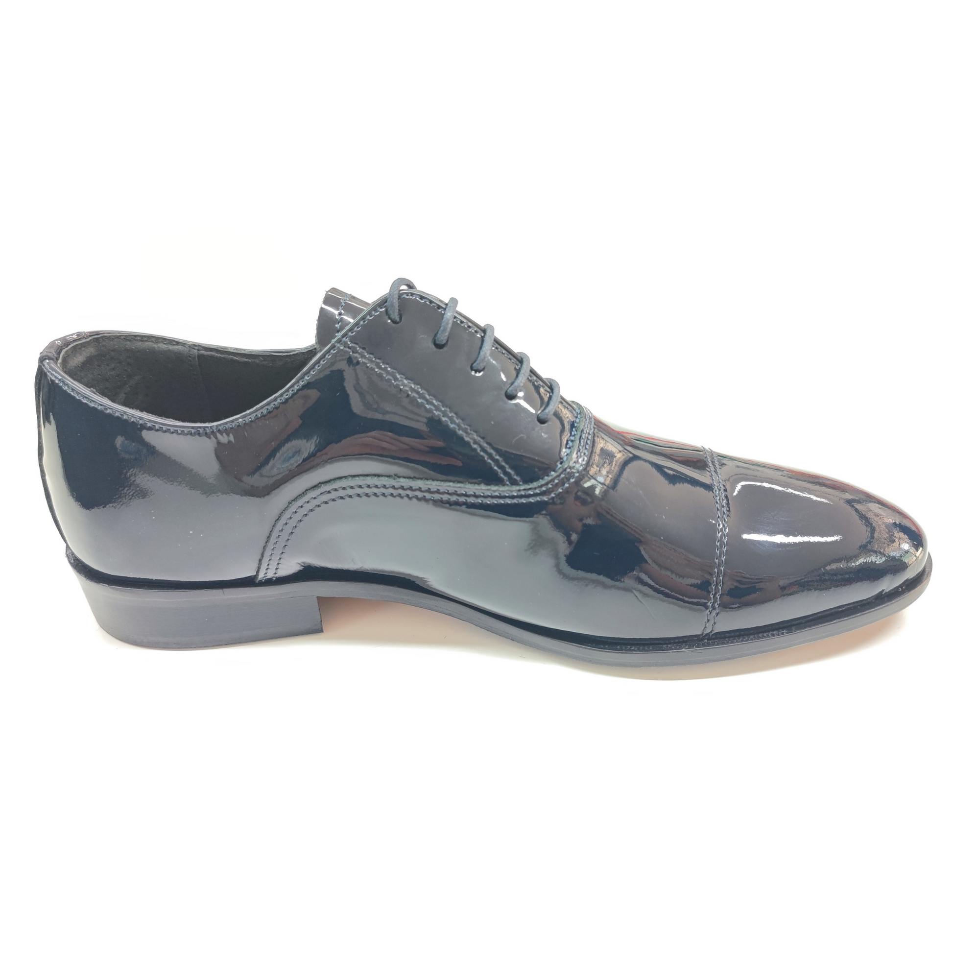 Realizzata in pregiata vernice nera lucida, è il complemento ideale per smoking, abiti da cerimonia o completi dal taglio sartoriale. Ogni dettaglio è studiato per valorizzare l’eleganza dello sposo moderno, senza rinunciare al comfort.