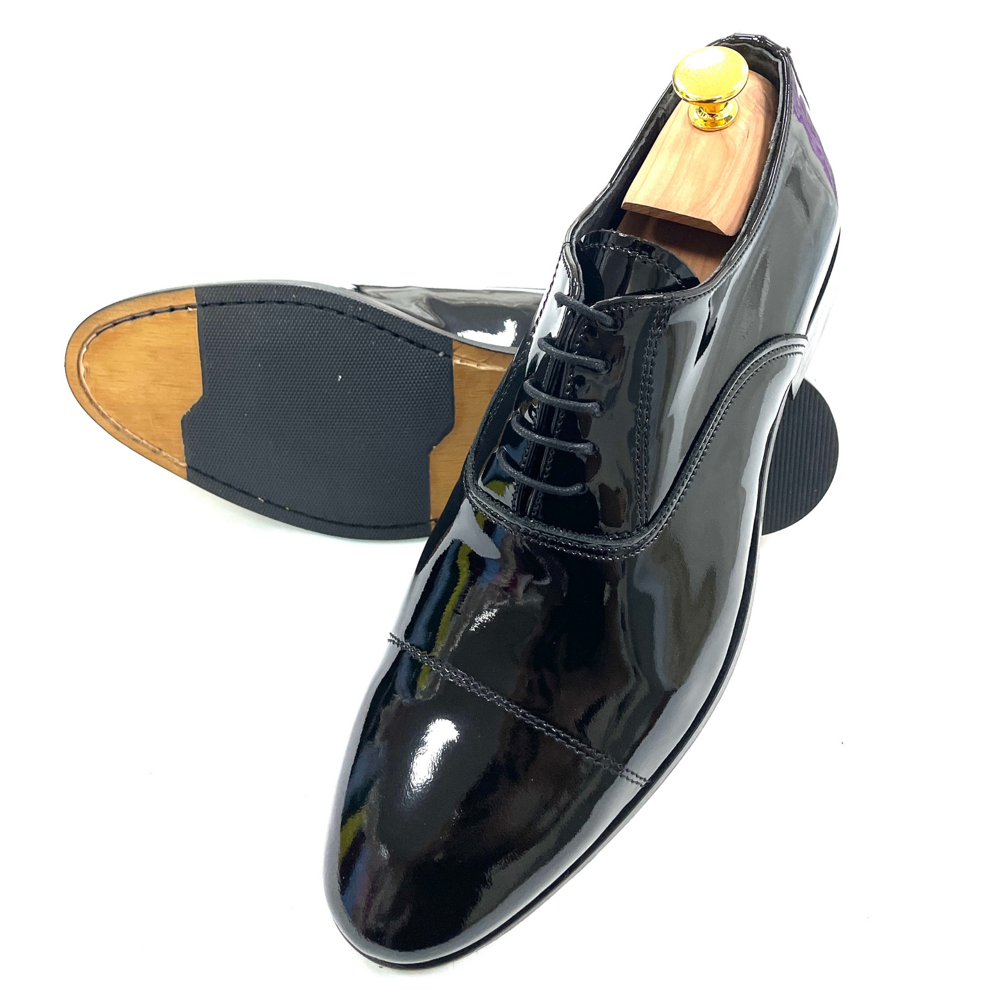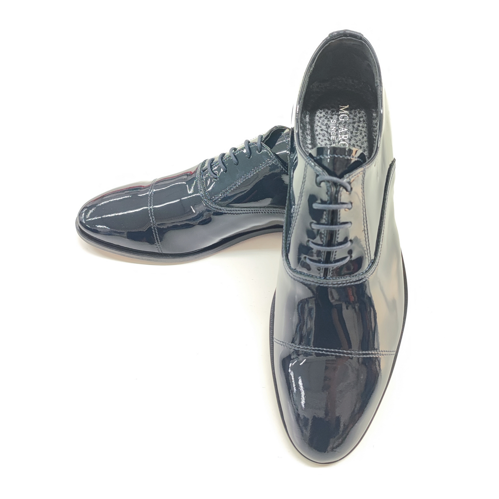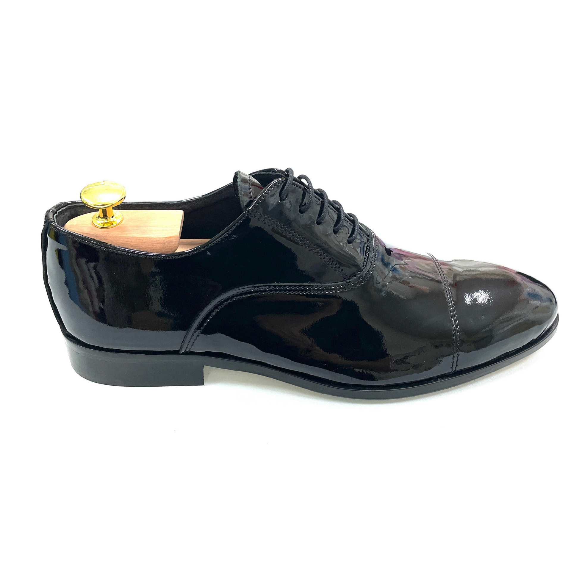 Realizzata in pregiata vernice nera lucida, è il complemento ideale per smoking, abiti da cerimonia o completi dal taglio sartoriale. Ogni dettaglio è studiato per valorizzare l’eleganza dello sposo moderno, senza rinunciare al comfort.