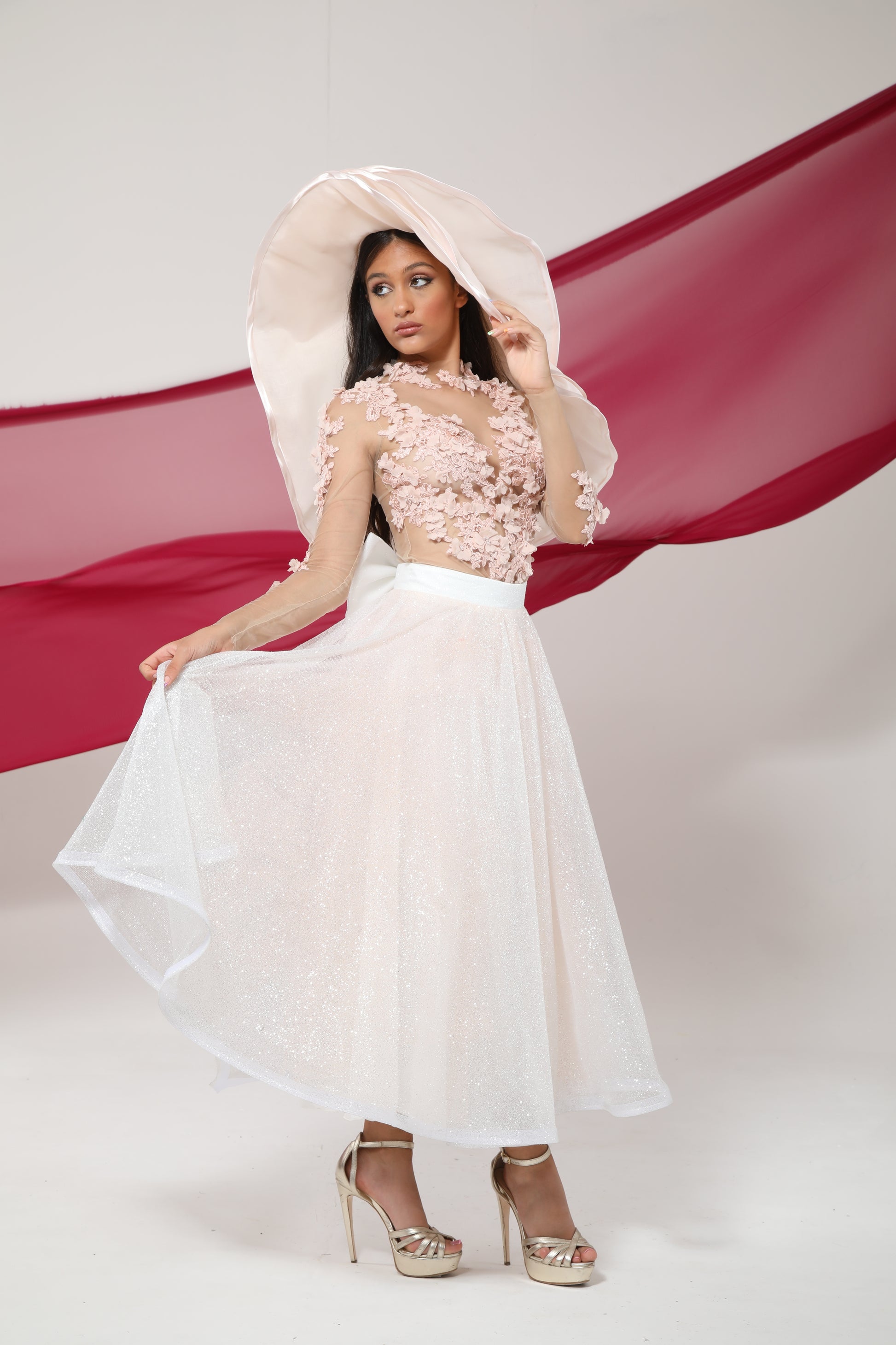 Presenta elementi floreali e un colore rosa antico. E' perfetto da abbinare al tuo abito.