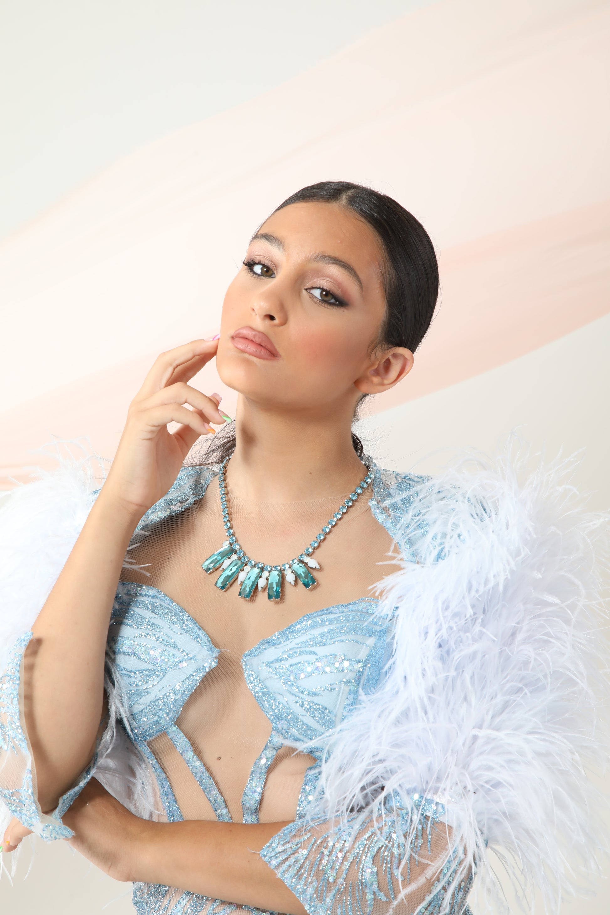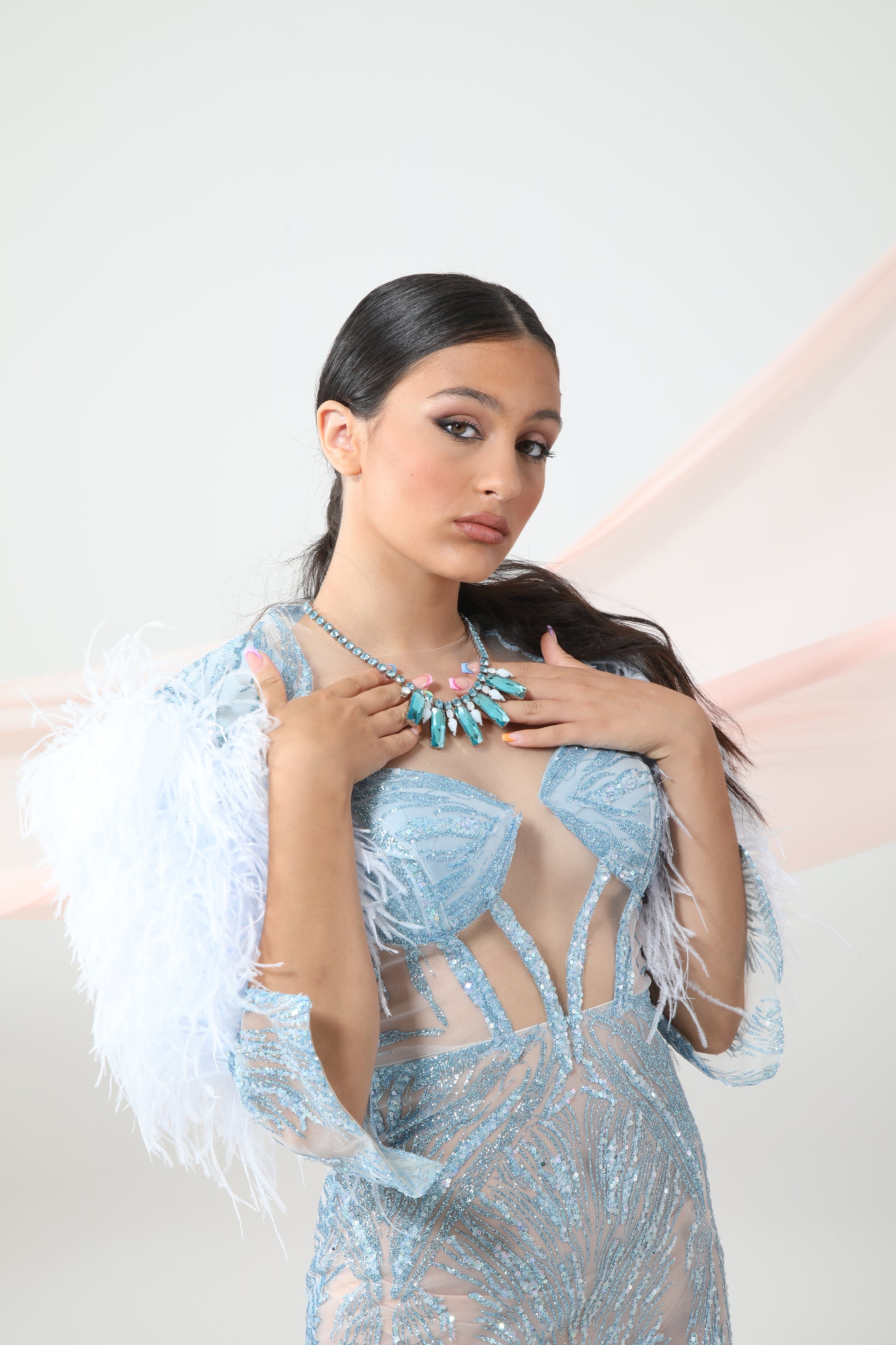 E' composto da pietre verde acqua alternate a pietre color crystal più piccole. E' l'ideale da abbinare al tuo abito.