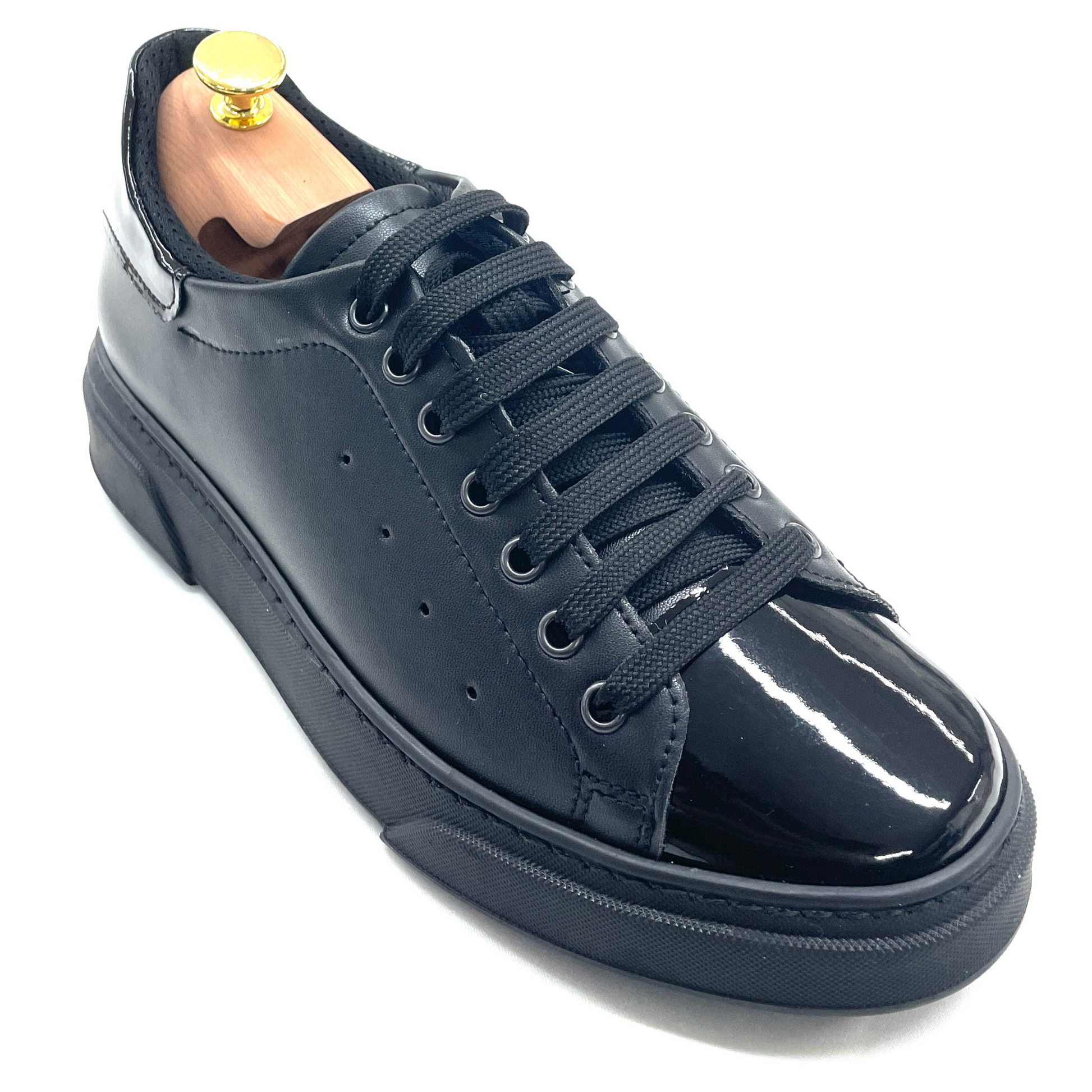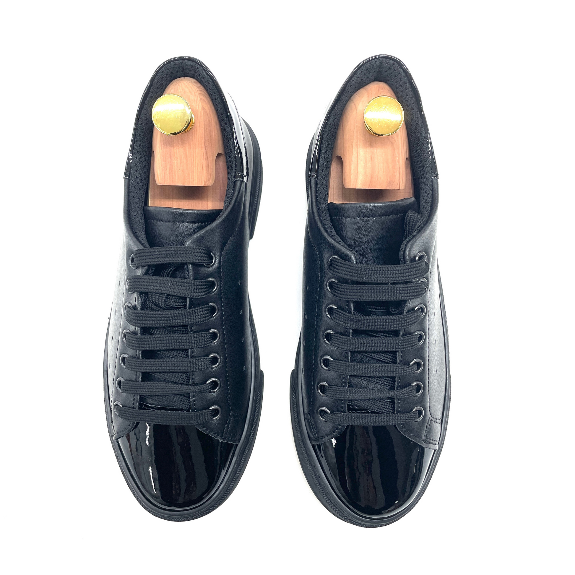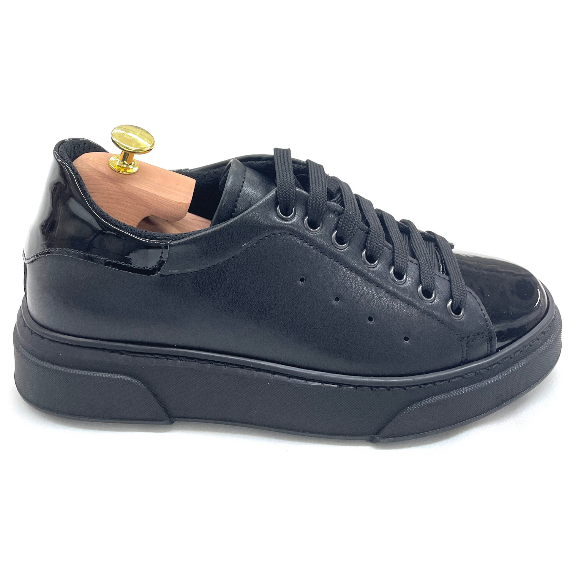 La pelle morbida spazzolata incontra la pelle in vernice in un accostamento armonioso che cattura lo sguardo e valorizza ogni outfit. Questa combinazione dona alla scarpa un aspetto ricercato, capace di aggiungere un tocco distintivo anche ai look più semplici.