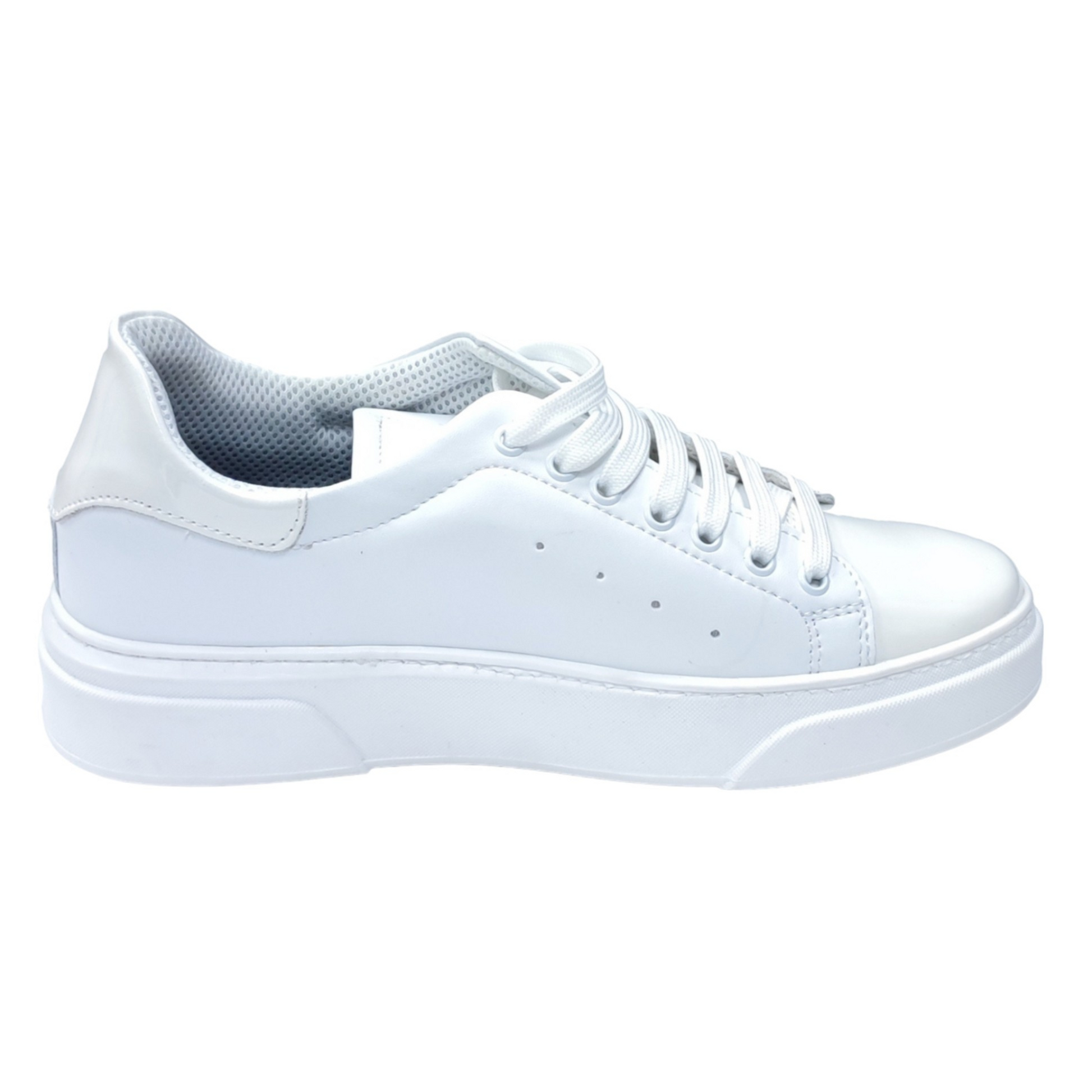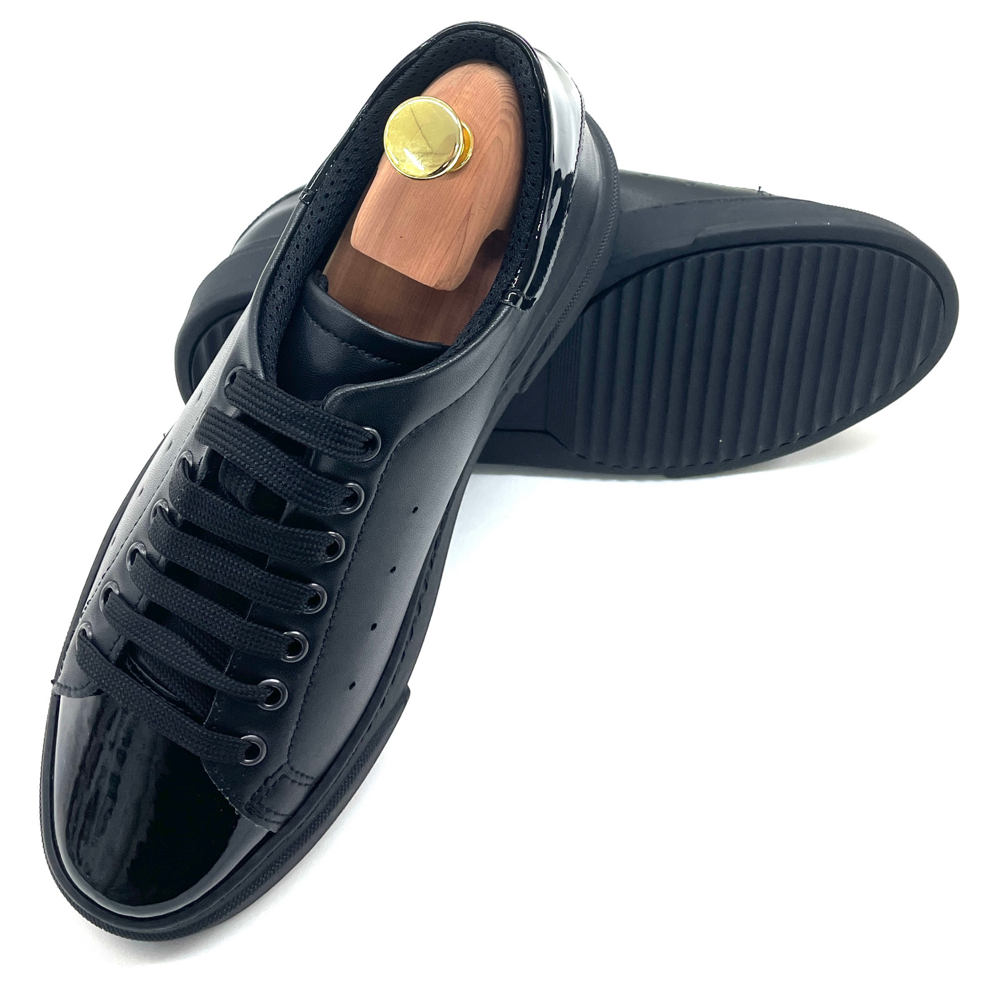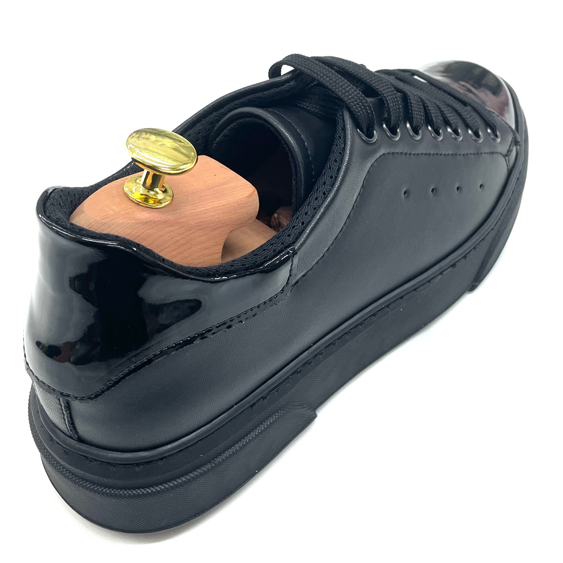 La pelle morbida spazzolata incontra la pelle in vernice in un accostamento armonioso che cattura lo sguardo e valorizza ogni outfit. Questa combinazione dona alla scarpa un aspetto ricercato, capace di aggiungere un tocco distintivo anche ai look più semplici.